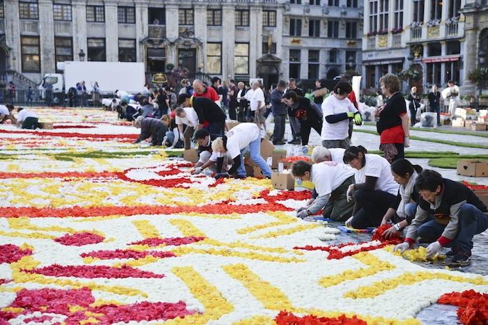 依頼を受けて他のヨーロッパの都市やアメリカなどでもフラワーカーペットを作ってきたストーテマス氏ですが、「ブリュッセルのグランプラスの歴史的な環境は、他のどの場所よりもより美しく、際立って特徴的で他とは比べものにならないほど素晴らしい」と述べています。残念ながら彼は1998年に亡くなり、その弟子たちが伝統と精神を引き継いでいます。