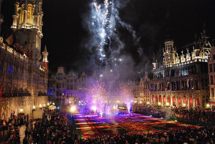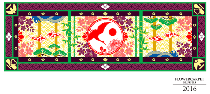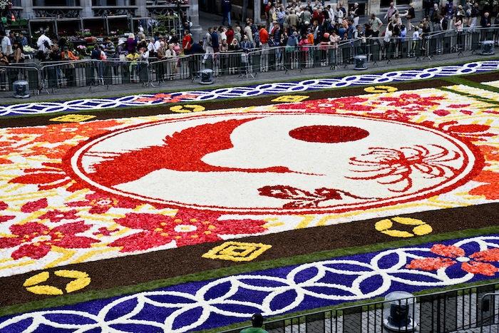 グランプラスにひときわ高くそびえる白い建物がブリュッセルの市庁舎です。そのバルコニーから見下ろすと模様がはっきりと見えます。初日12日は午後13時から18時まで。それから13日から15日までは10から22時までアクセスできます。