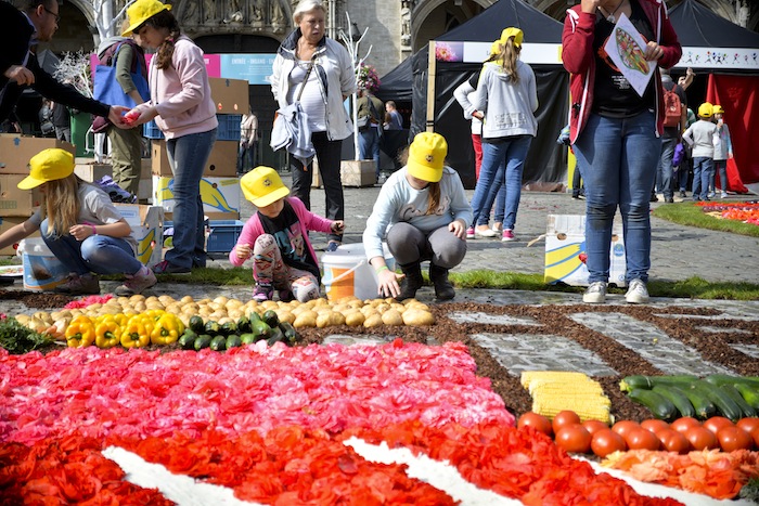 また、グランプラスでは子供たちによる3つの小さなフラワーカーペットが作られます。金曜日の朝からはじめて、お昼頃までにはお客様を迎える準備完了です。