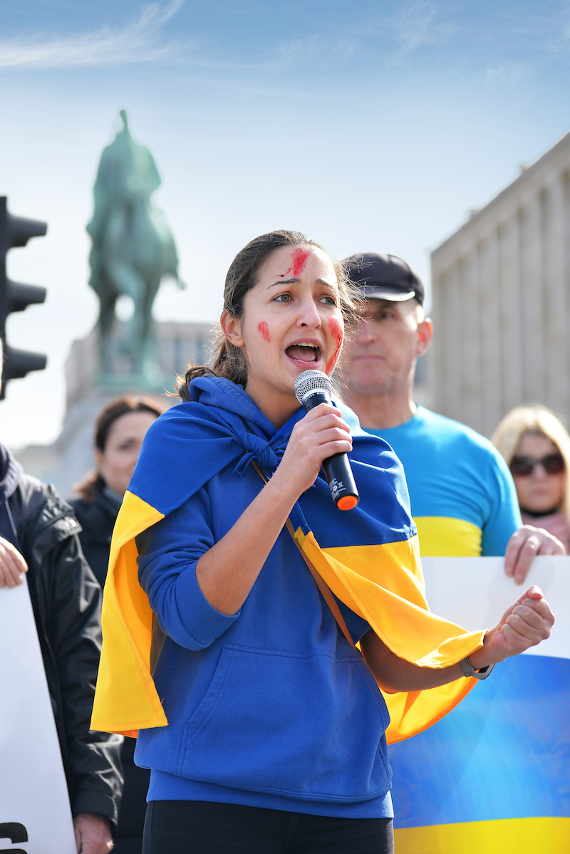 3月13日にブリュッセルの中央駅に近いアルベルティン広場で行われたデモ集会で人々に話を聞いた。戦争開始から18日目。ウクライナから避難してきた人々も加わり、プーチンのロシア軍の非道を弾劾し、EUとNATOそして国際社会に対しさらなる支援を求める叫び声が繰り返された。