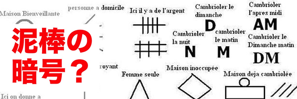 ●上記オは、居住者の属性(男性か女性か、単身か世帯かなど)や過去の侵入盗歴の有無、警備機器設置やペットの有無など、空き巣にとっての侵入リスクの高低を、仲間内で情報交換するためのマークである可能性があります。(マークのサンプルは、以下アドレスをご参照ください。)