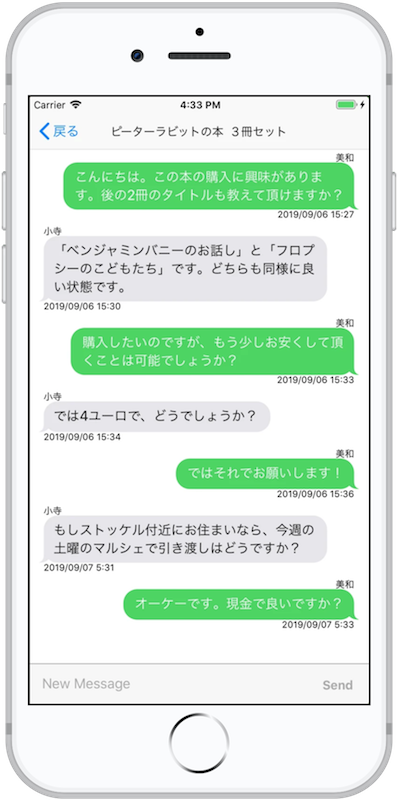 お手持ちのスマートフォンから簡単に出品や編集が可能。プライベートなチャット機能付きなので、安心して気軽に出品者にお問い合わせ。短い時間で出品完了なのが嬉しいですね。